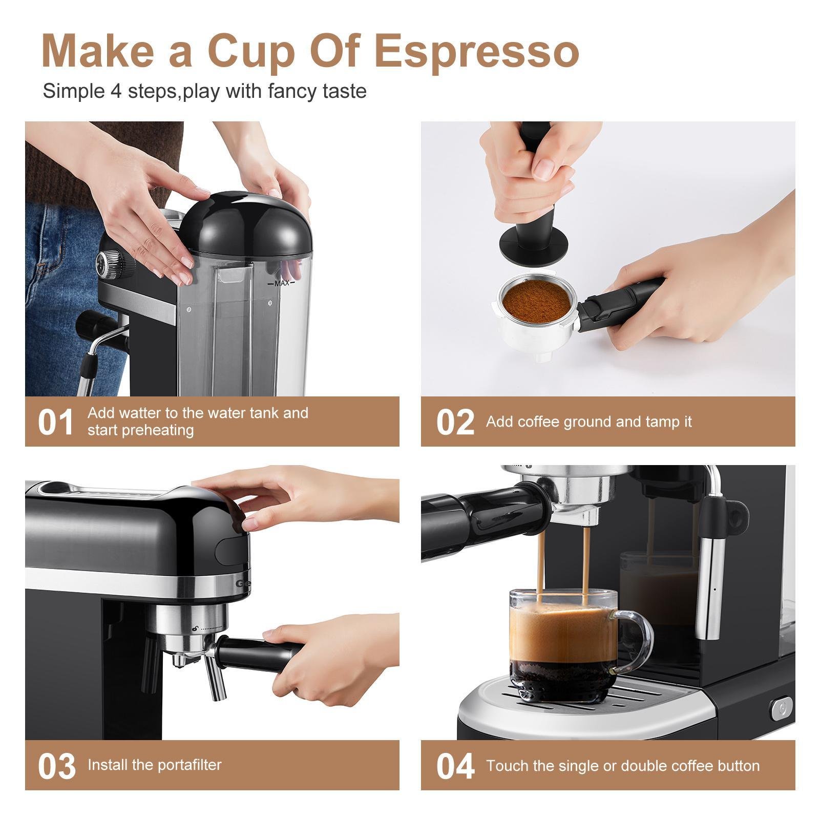 Home > 20 Bar Espresso Machine , 1350W High Performance, 1.4 Ldetachable transparent water tank, Thermo block beating system,With safety valve