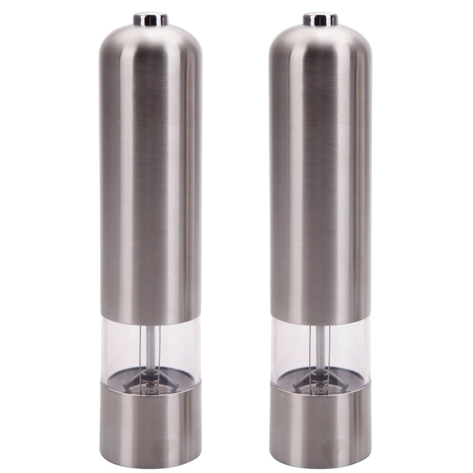 Home > 2pcs Stainless Steel Electric Automatic Pepper Mills Salt Grinder Silver