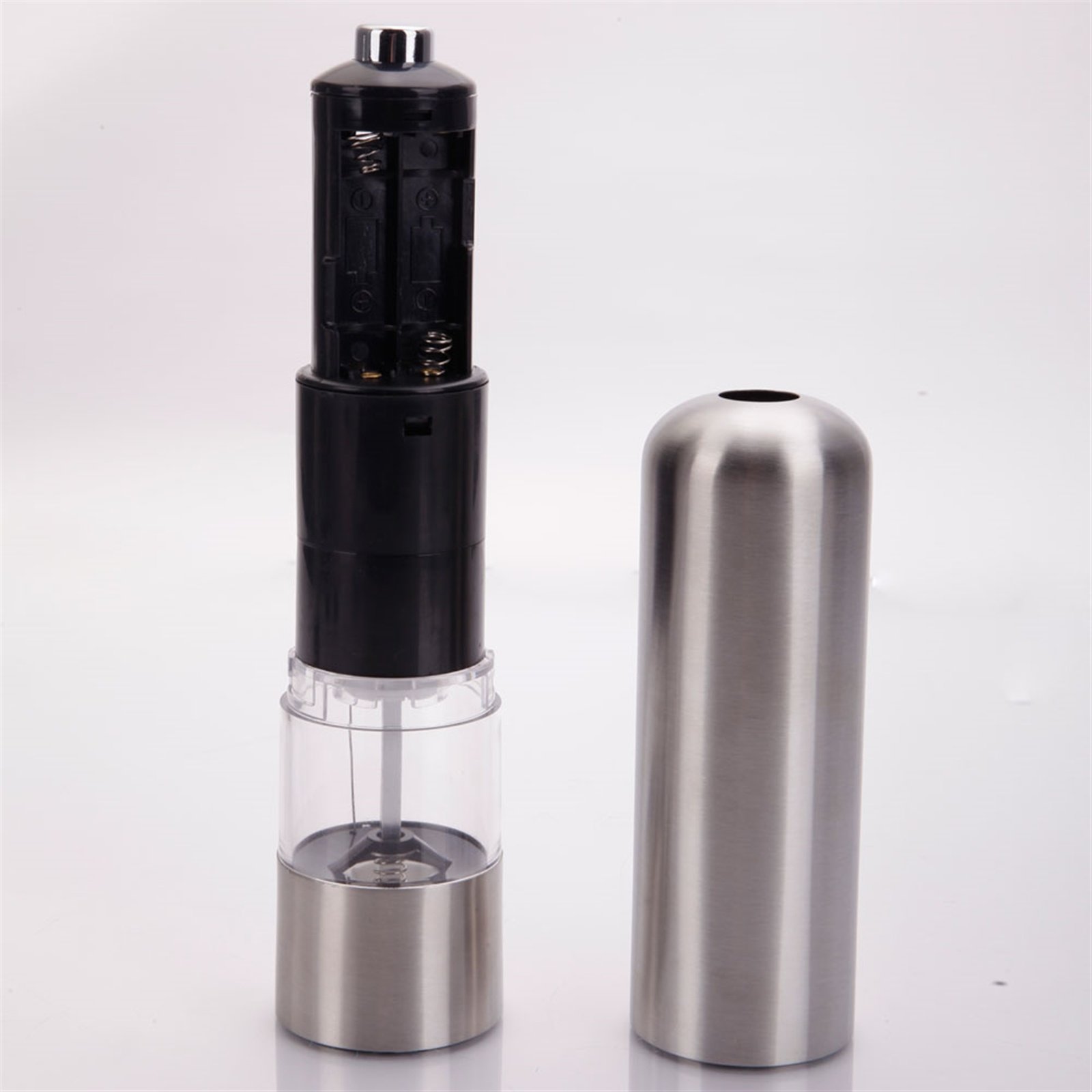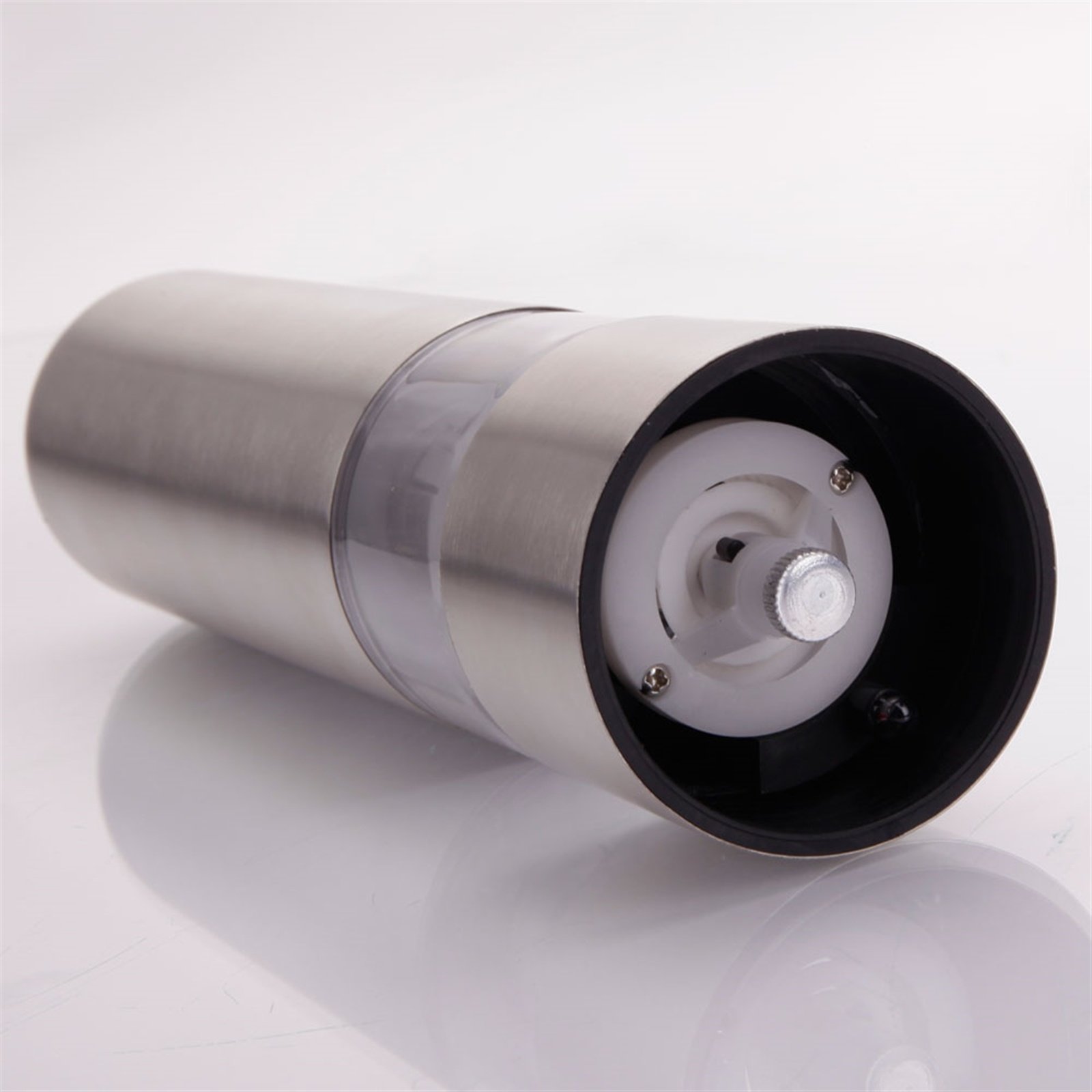 Introductions:Enjoy freshly ground seasoning on your food with this Stainless Steel Electric Automatic Pepper Mill Salt Grinder! Powered by batteries; it grinds salt and pepper automatically when you press the button on top. Moreover; you can adjust the fineness of the grind to suit your needs. See-through container lets you know the remaining pepper level. Made of high-grade stainless steel with a brushed finish; it is easy to clean while elevating your table decor style. Click and order right now!Features:1. Powered by batteries; grind salt and pepper automatically2. Adjustable fineness of the grind3. See-through container lets you know the remaining pepper level4. Made of high-grade stainless steel with a brushed finish; elevate your table decor style5. Easy to cleanSpecifications:1. Material: Stainless Steel2. Dimensions: (8.74 x 2.01)" / (22.2 x 5.1)cm (H x Dia.)3. Weight: 19.47oz / 552g4. Color: SliverPackage Includes:2 x Electric Pepper Mills