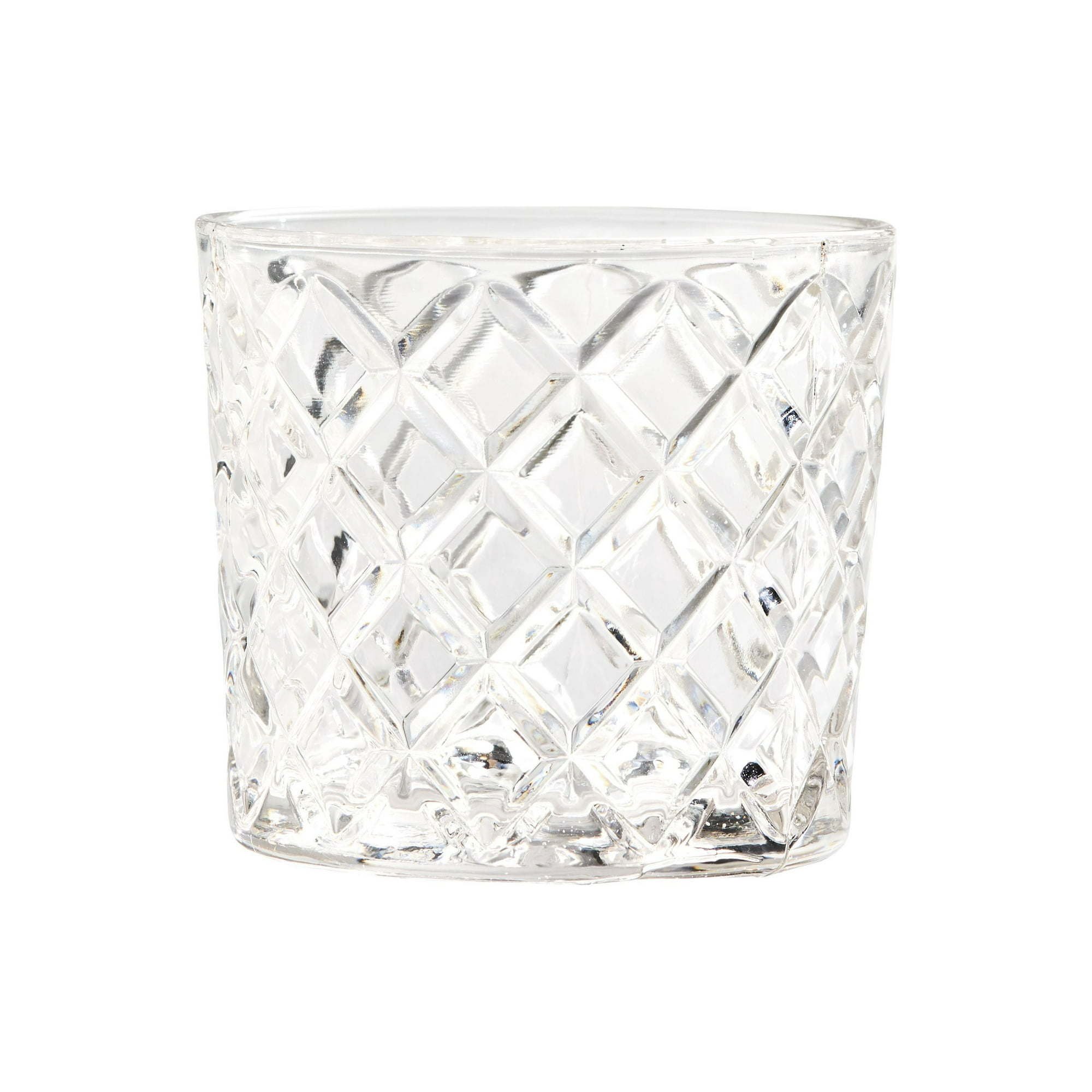Whether it’s a spirit poured neat or on the rocks, the Better Homes & Gardens Diamond Cut Old Fashioned Glass is a sophisticated glass for serving a beverage. The diamond-cut pattern in the premium clear glass holds up to 8 ounces of a beverage, and it offers a stylish flair to a classic household glass. With four in the pack, you’ll have a glass for each of your guests. Pour the drink in the Better Homes & Gardens Diamond Cut Tumbler Drinking Glass, then garnish it with a citrus peel or a cherry before serving.