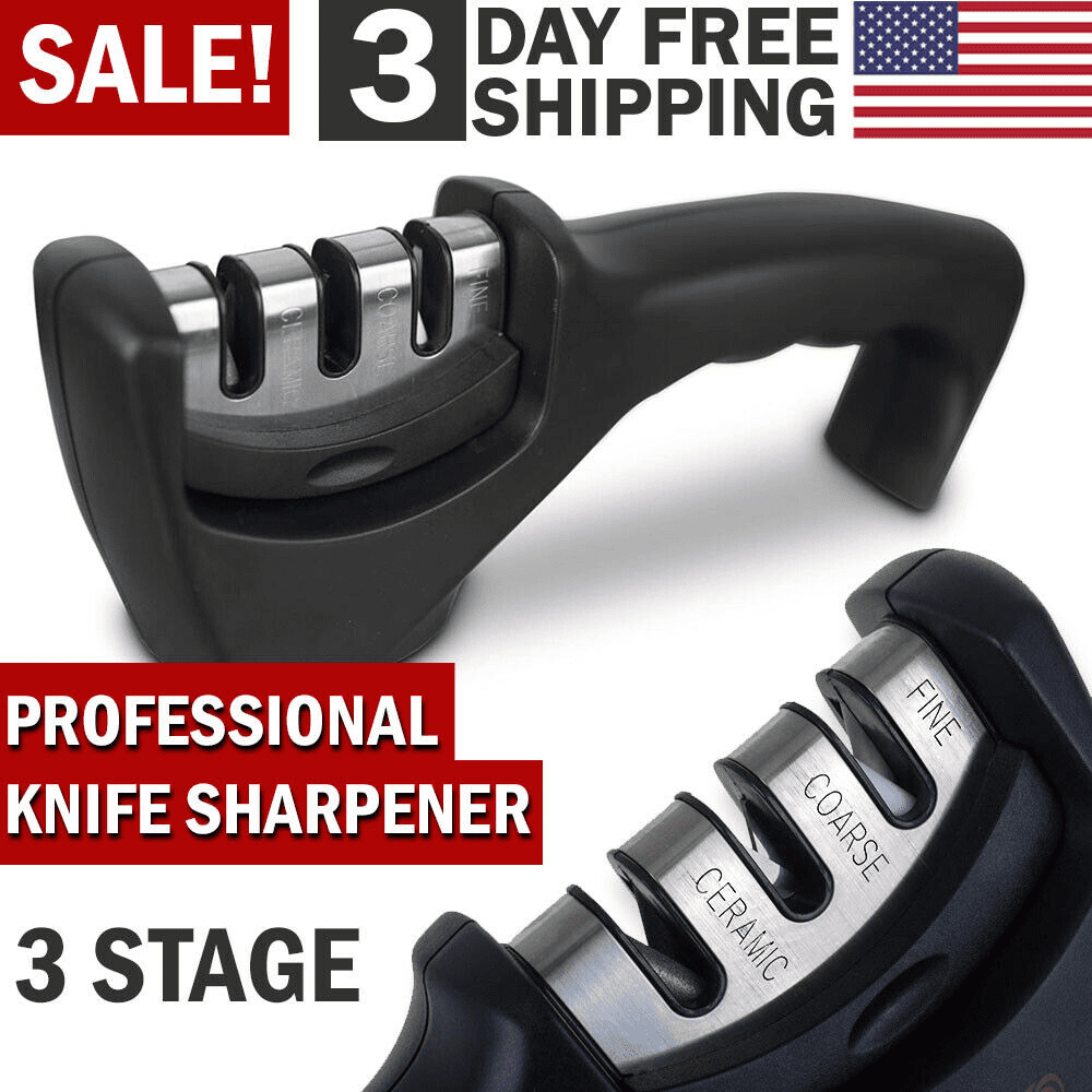 2 Day Handling ; 2-5 Day Shipping.3 Steps; within 10 Seconds; Using our Professional Kitchen Knife Sharpener you will get a sharpened blade as sharp as new.