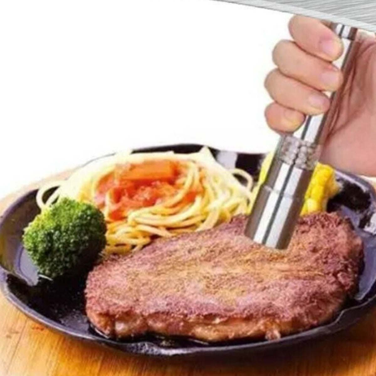 HighQuality stainless steel Salt/Pepper GrinderInnovative pepper mill dispenses spice with speed and ease.Press the top to grind pepper in a simple, one-handed operation way.Suitable for milling pepper, corn, mustard seed and other small sized spices.Convenient and efficient to grind pepper, salt and other kinds of spice.Ideal gadget to make freshly ground pepper powder spice for enjoying a tasty salad or steak.