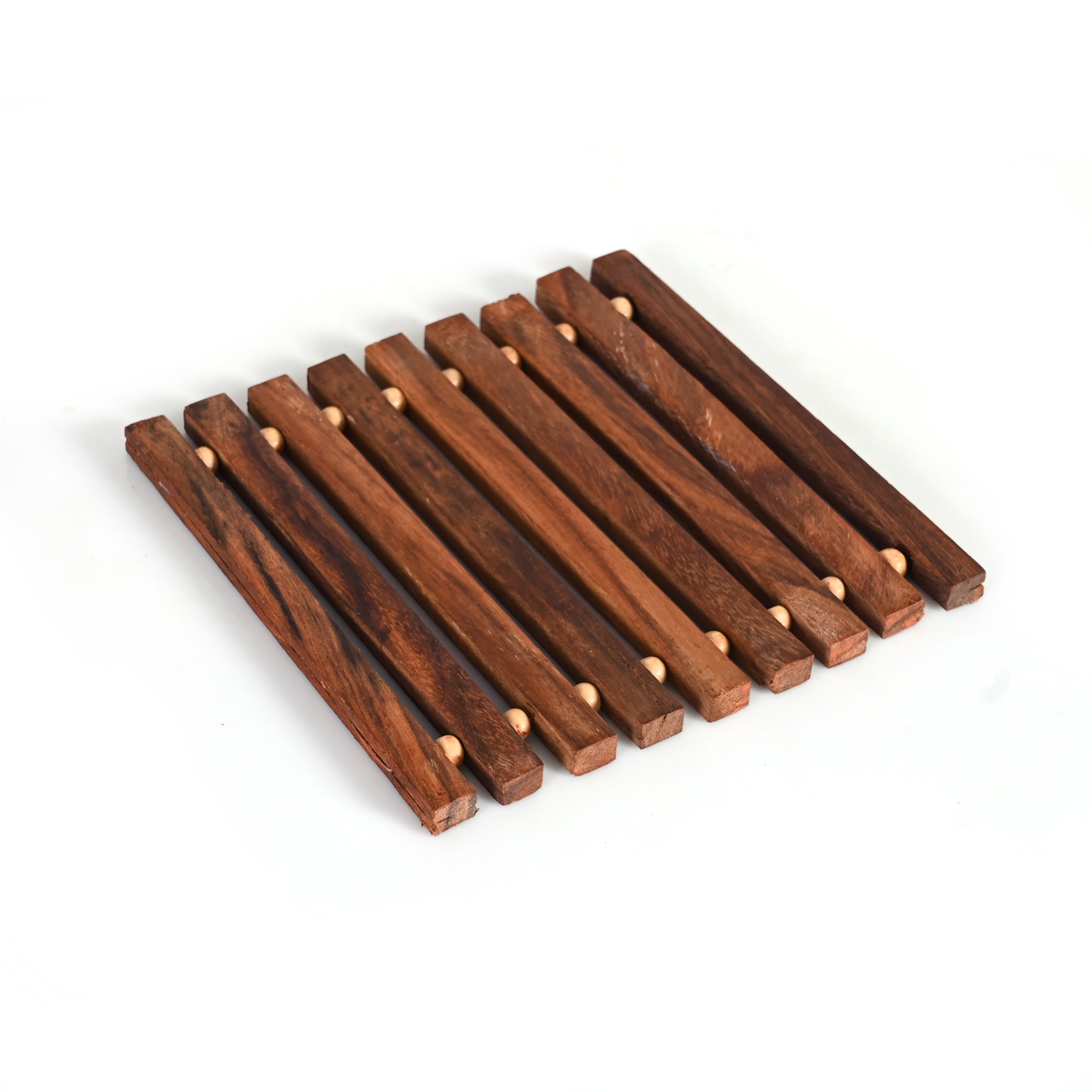 Bring Style and Oriental Decor to Your Dining Table! This Coaster is made of entirely Handmade from Rosewood (Sheesham wood) and Beads, Tea Coffee Cup Coasters Will Bring Elegance and Natural Beauty to Your Dining Table or Office Table which Will Impress your clients, Family and Guests and Make Your Dining Experience Memorable. Excellent Heat Insulating Property of Wood, Protects the Table from Direct Contact with Hot Cups of Tea or Coffee or Cold Glass of Beer Prevents Heat Damage, Cold Damage, Scratches, Spills, Wet Ring Marks and Stains. It Also Keeps the Cups, Mugs and Serve ware from Sliding off The Table. It Is Perfect Dining Accessory for Office, Everyday Family Dining, Parties and Special Occasions. Easy To Roll and Store, Wipe Clean, It Is Ideal for Long Lasting Use and Prolongs the Life of Your Dinner Table.